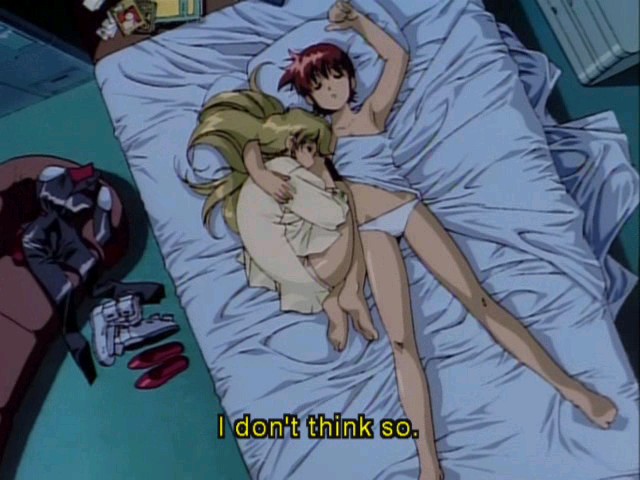 Non, tout ça n'a pas grand intérêt, alors pourquoi aller mater Plastic Little ? Et bien, les connaisseurs auront reconnu le trait innimitable de Satoshi Urushihara qui a comme réputation de dessiner les plus beaux seins du monde du manga. Alors il sait les dessiner, et il en profite. On voit par moment une poitrine apparaître à l'écran (bon, surtout dans la fameuse scène du début où les deux filles s'amusent gaiement dans les toboggans et le bain. 5 minutes de filles toutes nues, voilà que je vais me faire une réputation de pervers).