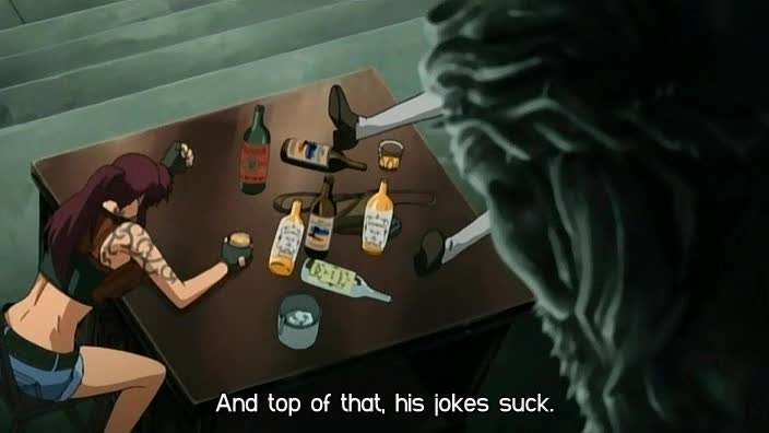 discussion entre le groupe de 4 et la jeune fille, nommée Jane, qui leur explique qu'elle est poursuivie par des membres du Cartel Neveral, qu'elle a été engagée pour réalisée de faux billets mais qu'étant en retard, ceux-ci ne sont pas franchement contents. Elle se lance alors dans un long monologue sur la fabrication de faux billets qui, au bout d'un moment, commence à lasser sévèrement Revy et Eda.