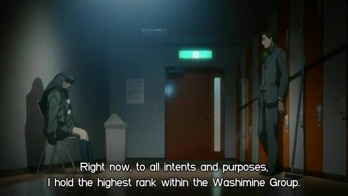 Alors, pour le reste de l'épisode, c'est beaucoup de blabla. La première moitié avait dû mettre le poignet des animateurs à rude épreuve, alors, ils se sont reposés pour la seconde et on a donc une longue scène de dialogue même si elle est entrecoupée d'autres petits passages, notamment les hommes de Balalaika qui se préparent à l'attaque, mais pour le reste, on a Yukio et Rock qui parlent, avec le petit Rock qui est tout gentil, veut du mal à personne et du bien à tout le monde, mais l'autre qu'est pas contente (elle a ses raisons en même temps, elle est à moitié à poil et s'est faite tabasser...) qui vient le remettre à sa place... Bref, j'avoue que j'ai à moitié suivi la deuxième partie en fait...