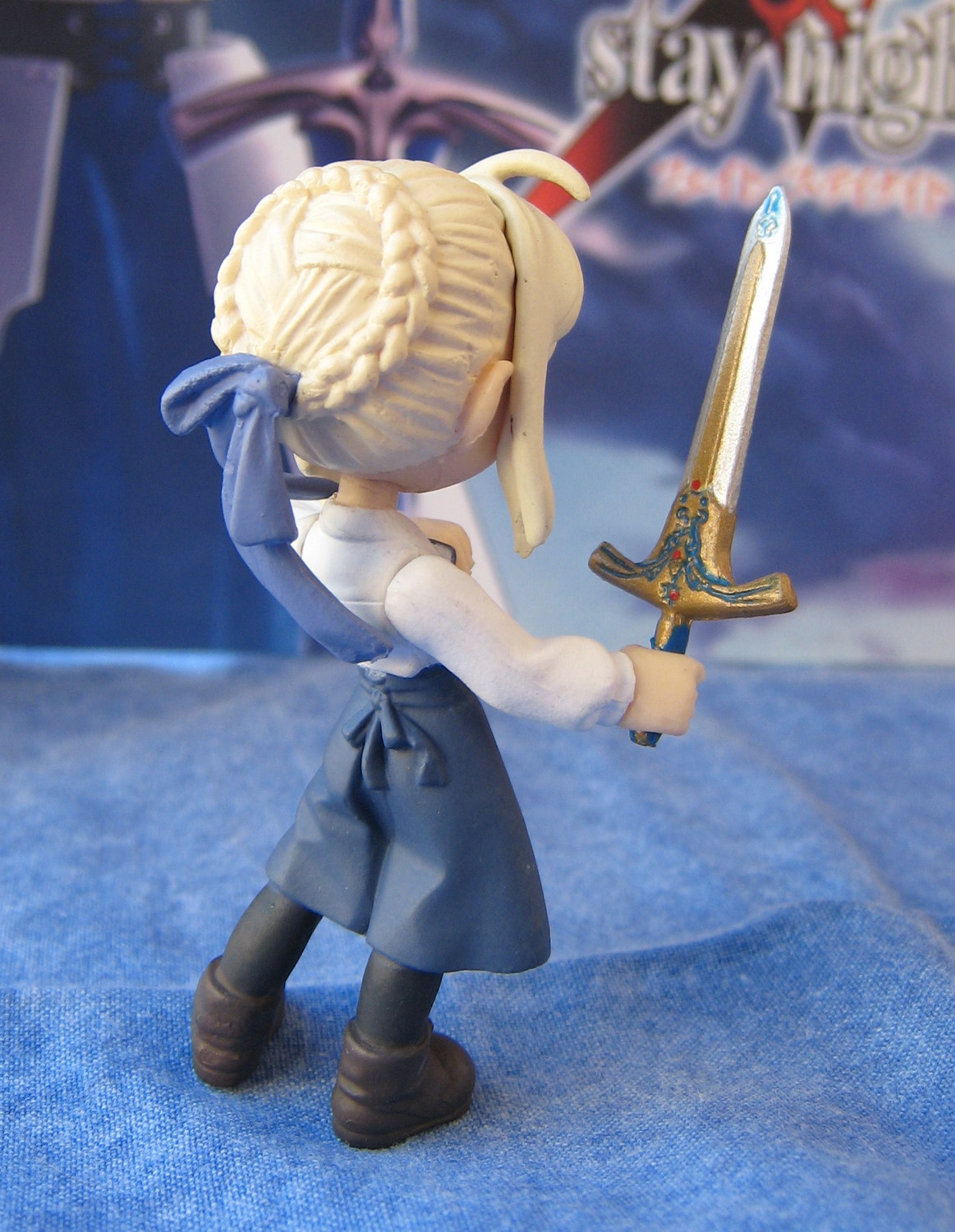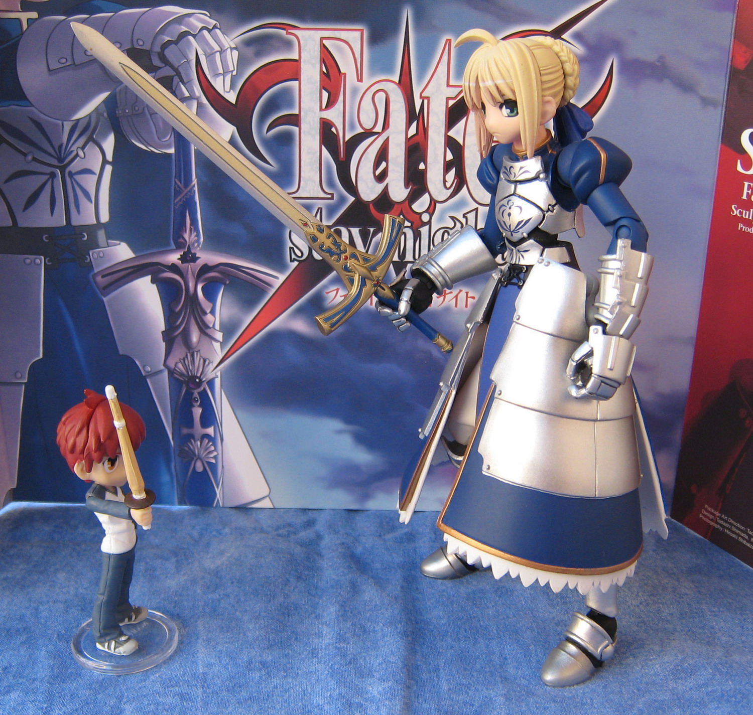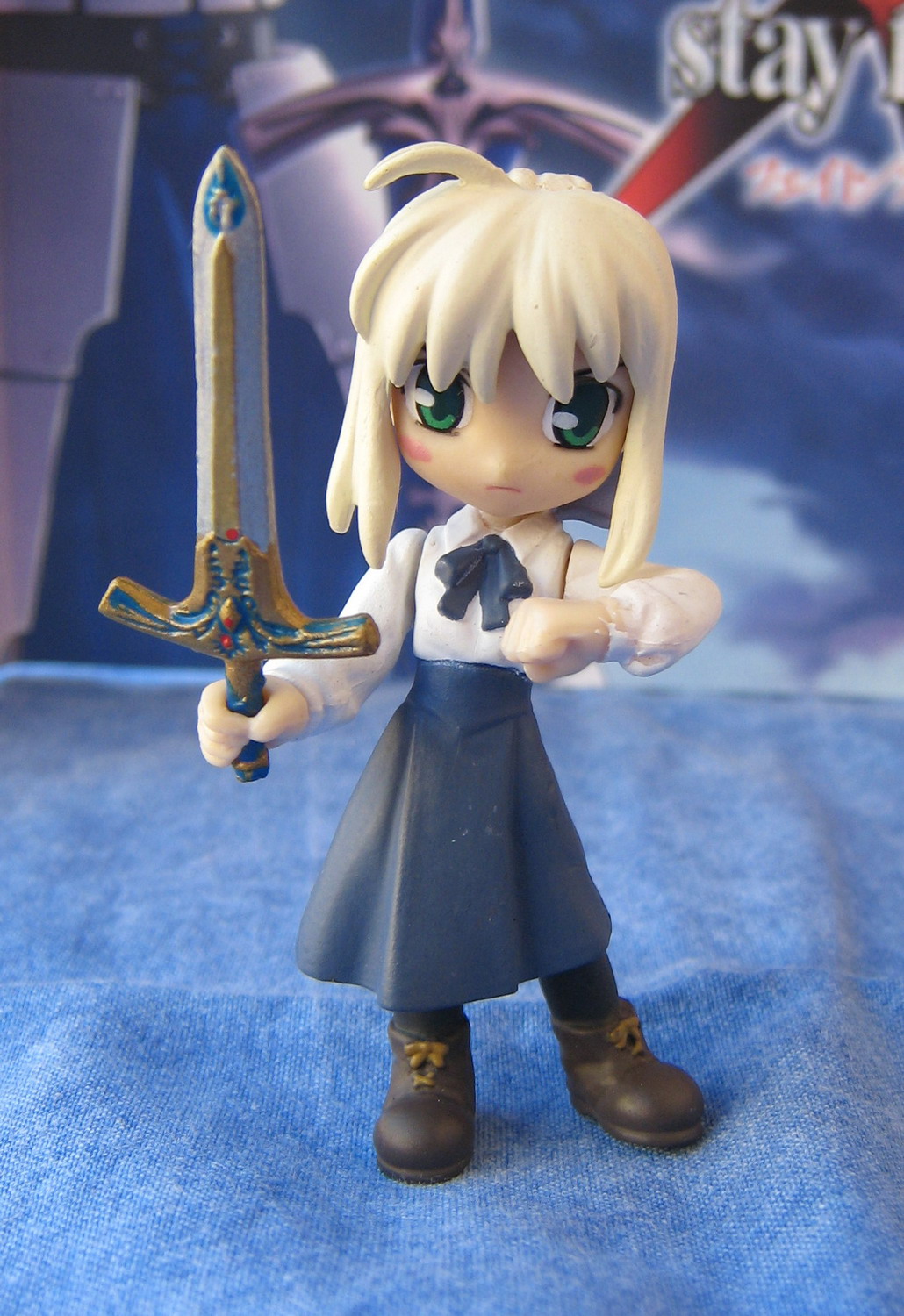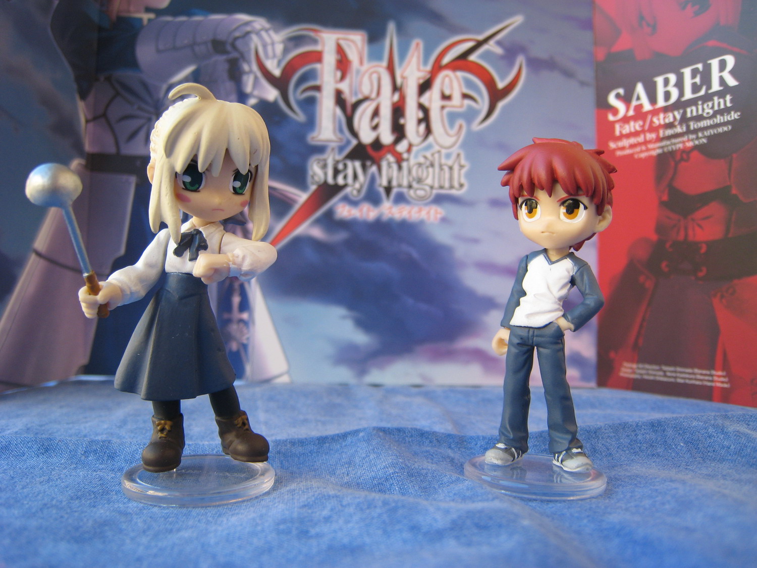 Bref, je m'exprime très mal je trouve. Avec cette figurine commandée, j'avais également pris un "Palm Scenery Fate/Stay Night", deux mini figurines de Saber et Shirou, disponibles avec trois petites armes : un épée, un sabre et une cuillière (!).