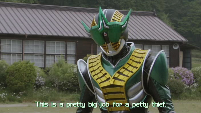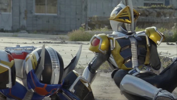 Je vous fais pas le résumé complet, pour le reste, vous rajouter beaucoup de castagne, de l'action, de l'humour, des combats et des henshin, vous mixez et voilà !