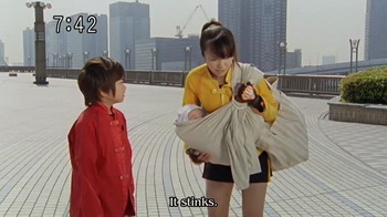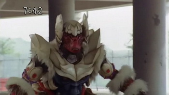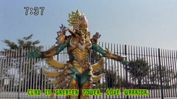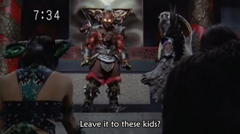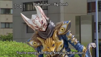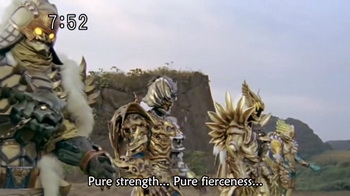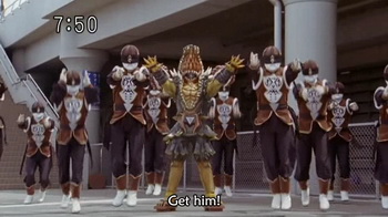Parce que bon, l'un dans l'autre, ça reste une série pour enfants - je l'avais déjà dit pour Boukenger, et ça n'a pas changé, ce sont des séries faites pour vendre des jouets -, qui tire ses références un peu de tous les côtés, surtout du côté de la mythologie chinoise, mais les costumes, en particulier ceux des méchants, sont généralement un plaisir pour les yeux. On trouve généralement deux types de costumes chez les méchants, ceux de base qui sont détaillés, avec un côté grotesque assez poussé pour bien qu'on comprenne que ce sont des méchants, et puis, il y a les ennemis un rang au-dessus, qui ont un plus grand rôle à jouer et qui possèdent des costumes vraiment magnifiques. Rio, Mele, Maku, Long sont autant d'exemples de personnages très réussis.