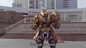 Bref, comme généralement avec les Sentai, la seconde moitié de la série sombre petit à petit dans un scénario plus sombre, avec un nouveau groupe de méchant qui apparait, dirigé par Long dont les motivations ne seront connus qu'à la fin de la série. A noter que dans le rôle de Suguu, on retrouve mon chouchou Kenji Oba, mieux connu par chez nous pour son rôle de... X-Or !
