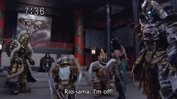 Heureusement, du côté sombre de la Force (décidément, je mélange tout ce soir...), on trouve les RinJyuDen : la sexy Mele et le ténébreux Rio. J'avoue avoir eu un peu peur avec Rio au tout début, avec son design un peu SM, qui rappelle les exubérances stylistiques dont est capable Tetsuya Nomura par exemple. Mais finalement, on s'y fait. Il est un peu limite dans son côté "Moi le plus fort, moi veux me battre et le reste on s'en fout", mais son armure est tellement réussie...
