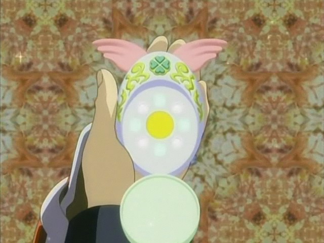 Ah si ! Je sais ce que je voulais dire. L'anime est vraisemblablement tiré d'un jeu vidéo (en tout cas, on doit la série à Konami), et on sent qu'il servira de produit marketing avec l'héroïne qui utilise un "sweet phone" qu'elle combine avec des cartes pour le transformer en arme. Oh la la, que c'est inventif, pis surtout, c'est pas fait pour vendre des jouets du tout, du tout, du tout. En plus, le truc est moche et ressemble à un