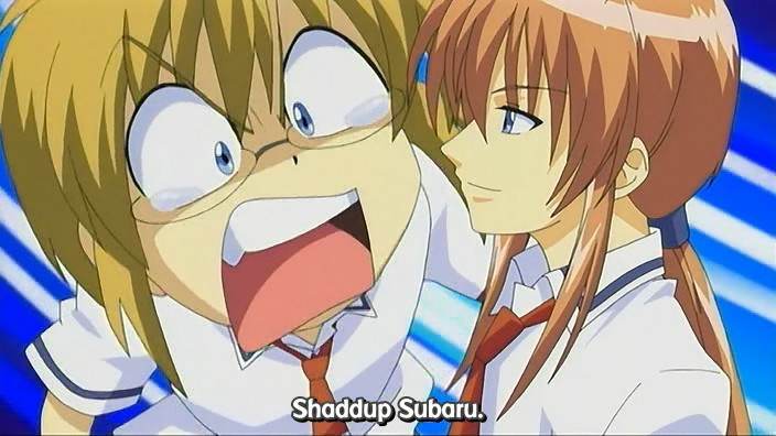 Tiens, du school life, ça faisait longtemps que je n'avais pas maté ça, surtout une comédie avec un peu d'ecchi (mais pas trop), je crois que la dernière fois, ça remonte à Onegai Teacher/Twins. Premier épisode, voyons de quoi il en retourne. Je passe les détails comme quoi c'est un anime tiré d'un jeu vidéo, et rentrons directement dans le vif du sujet.
