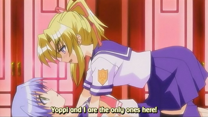Les premières images que j'avais vue m'avait un peu fait peur, en particulier, le dessin dispo sur DreamJap (j'ai déjà mis le lien il y a quelques temps, et j'ai la flemme de le remettre, désolé) où l'on voyait un joli cadrage sur la culotte de la petite blonde, mais au final, je pense que ça devrait aller. On n'évite pas quelques plans, mais ça n'a rien de bien méchant, la serviette qui tombe, les filles en maillot de bain et par moment, on a des mini