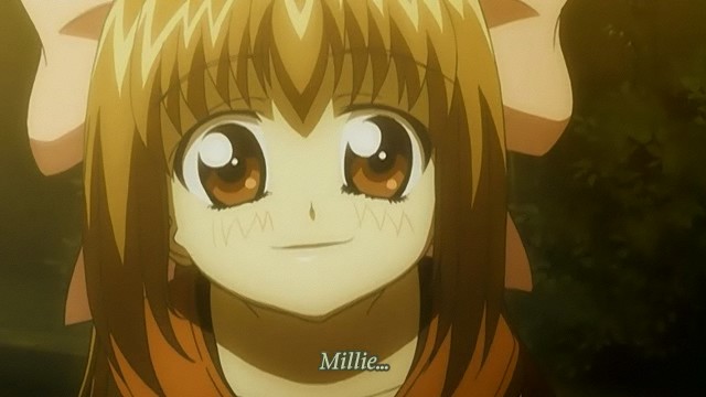 stratégiques" quand elle entre dans le café. Après tout, elle a vraiment un physique qui dépareille de celui d'Honoka, grande à forte poitrine, alors que l'héroïne est petite et pas forcément bien gâtée de ce côté-là. Mais en plus, ce n'est pas tout, car outre le fait d'être apparement une bonne combattante, elle semble avoir hérité, à l'instar d'Iks, d'un pouvoir magique, celui-ci lui permettant de changer la volonté des autres personnes en mettant la paume de sa main en face d'eux. Evidemment, ça ne fonctionne pas sur Honoka, sans aucun doute grâce à son troisième oeil.