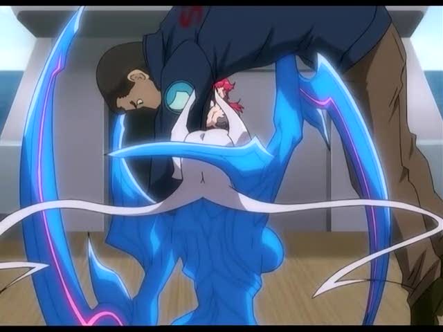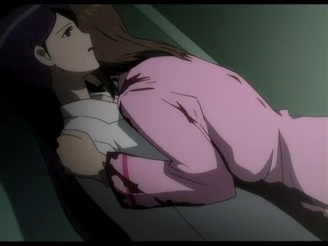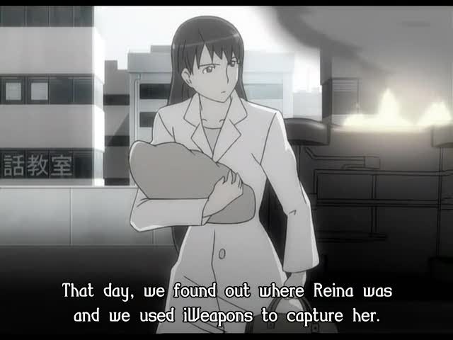 Tout va mal du côté des CloneBlade. Rappellez-vous, au dernier épisode, la bataille opposant Amaha à Shiori, bien que cette dernière semblait remporter le combat sans problème, se retrouva avec son arme brisée, entraînant un disfonctionnement de sa CloneBlade. On la retrouvait donc dans sa chambre d'hôpital alors qu'elle venait de tuer une infirmière. Arrive Reina qui lui demande de se calmer, de "ranger" son arme (ça fait con de dire ranger puisqu'il s'agit d'une lame sortie de son poignet) et alors qu'elle la tient dans ses bras en essayant de la