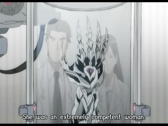 impression qu'on la prend pour une conne. Une cruche à gros sein, quoi ! (ce qui serait quand même à moitié vrai...) Et elle s'en va demander des explications. Là où tous les spectateurs ont bien compris qu'il s'agissait d'expériences datant de quelques années, elle, il faut qu'elle aille demander qu'on lui raconte tout. Je vous jure. Alors, pour les deux du fond qui regarde les épisodes en surfant sur Internet en même temps, on nous explique ce que tout le monde a deviné, à savoir que la NWSF et Douji ont fait des expériences communes, que les deux bossaient ensemble sur la