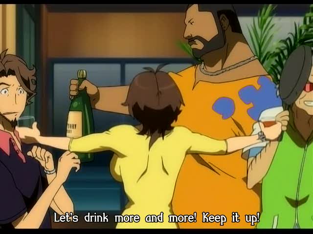 verre à la patronne. Arrive Chou qui n'est pas chou qui demande sa bouteille à la patronne et invite tout le monde, la psycho, Mickael la grosse brute, Masane évidemment et même Tozawa et évidemment, ça s'enchaîne sur la grosse
