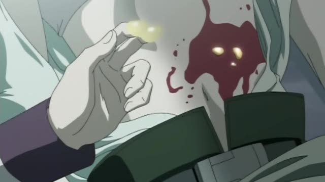 décoche un coup de sabre d'une telle puissance qu'elle parvient à détruire les nanomachines situées dans le corps du méchant. Le voilà incapable de se régénérer et il s'effondre misérablement dans le sol...