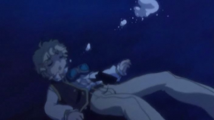 eau et qu'il doit aller le chercher. Pendant ce temps, les vampires présents sur le bateau, s'enfuient sur une petite chaloupe de secours.