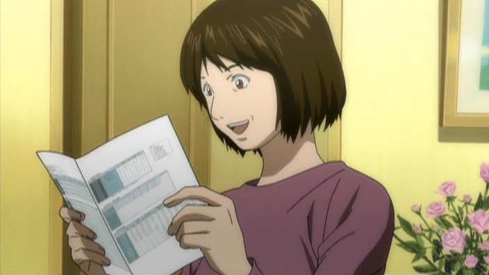 splittés qui vont montrer soit plusieurs personnages, ou plus généralement Light agissant d'un côté, et les conséquences de ses actes de l'autre. A ce sujet, on a toute une scène où on voit notre héros en train de remplir un cahier. Cette scène est animée de manière très nerveuse, la caméra bougeant dans tous les sens, tremblante pour montrer les pulsations de Light en pleine action. Vraiment la meilleure scène de l'épisode.