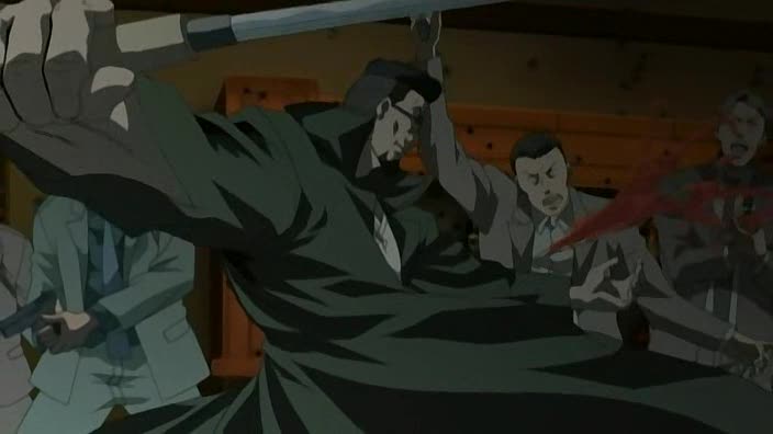 surhomme puisque, armé de son seul katana, il arrive à venir à bout des russes qui, eux, lui tirent dessus. Bonjour le superhéros ! Mais la scène est violente, rapide et jouissive. En plus, le Ikyu était présenté comme un minable, donc l'un dans l'autre, c'est pas un mal.