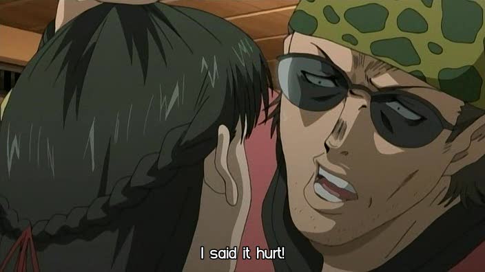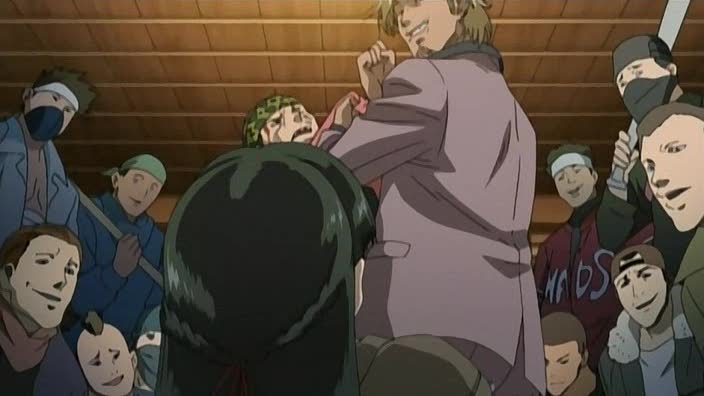 Enfin, la meilleure scène de l'épisode, qui fait bien monter la pression pour les événements à l'avenir, c'est l'enlèvement de Yukio par Sha-ka (oups) et ses hommes. Déjà que le chef n'est pas fameux dans son rôle de petit boulet qui ne sent plus quand il a une arme dans les mains, on voit que ses gars ne sont pas vraiment mieux (
