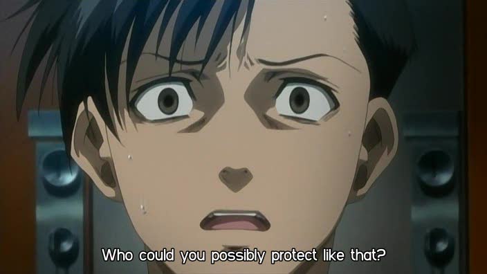 Alors, pour le reste de l'épisode, c'est beaucoup de blabla. La première moitié avait dû mettre le poignet des animateurs à rude épreuve, alors, ils se sont reposés pour la seconde et on a donc une longue scène de dialogue même si elle est entrecoupée d'autres petits passages, notamment les hommes de Balalaika qui se préparent à l'attaque, mais pour le reste, on a Yukio et Rock qui parlent, avec le petit Rock qui est tout gentil, veut du mal à personne et du bien à tout le monde, mais l'autre qu'est pas contente (elle a ses raisons en même temps, elle est à moitié à poil et s'est faite tabasser...) qui vient le remettre à sa place... Bref, j'avoue que j'ai à moitié suivi la deuxième partie en fait...