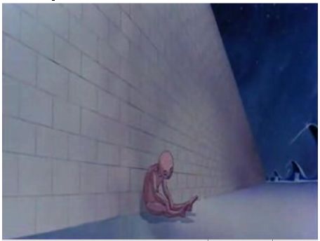 Le morceau en question est donc ce jugement, un des morceaux les plus emblématiques du film, aussi bien musicalement, que scénaristiquement et visuellement. Je garde le musical pour la fin, j'ai parlé du scénaristique juste avant, reste donc le visuel. The Wall, pour ceux qui n'ont jamais vu est un opéra rock, un film où les chansons du groupe se mélangent au reste du film. Pas vraiment une comédie musicale, car quand on pense comédie musicale, on voit les personnages qui, d'un seul coup, se redressent et se mettent à pousser la chansonnette en dansant dans tous les sens. Ici, la musique est un personnage à part entière, mais l'ambiance du film est définitivement lugubre. Oh, je ne vais pas trop en raconter, je me garde ça pour quand j'aurai réussi à me choper le DVD à pas trop cher. Quelques séquences du film sont réalisées en animation traditionnelle (en même temps, à cette époque, l'animation 2D était la plus fréquemment utilisée...). Ces séquences d'animation ont été réalisées par Gerarld Scarfe, un illustrateur anglais. Et c'est donc le cas du morceau ici présent, qui est une séquence d'un peu plus de 5 minutes entièrement dessinée et animée (ou dessin-animée ?).