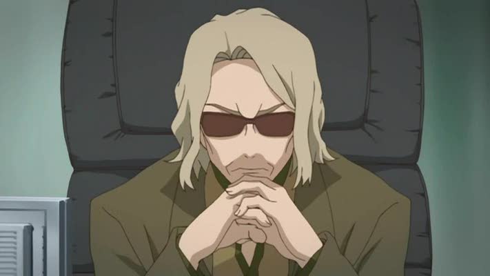 patron (qui ressemble étraaaangement à Gendo Ikari d'Evangelion, mêmes lunettes, même pause...), les
