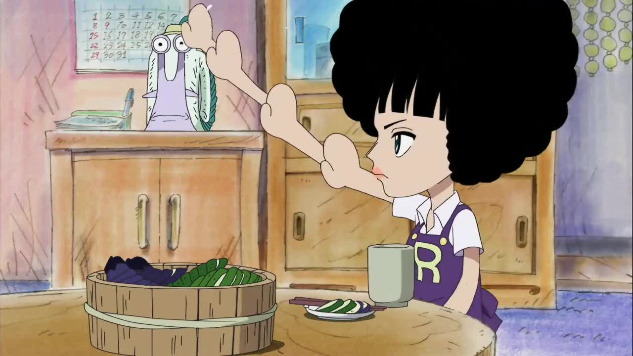 Tsukabi est un reporter qui va interviewer les membres de l'équipage de Luffy pour savoir comment cela se passait avant l'arrivée de Sanji dans l'équipe en ce qui concerne la gestion de la nourriture. Là, on apprend la solution très simple de Luffy : si un poisson géant essayait de le manger, alors il le fracassait et s'en faisait un repas. Quand Zoro arriva, il amena sa propre technique de survie : si un poisson géant essayait de le manger, alors il le fracassait et s'en faisait un repas. Finalement, l'aide de Usop et Nami n'étant pas tellement meilleure, la fine équipe eut bien besoin de l'arrivée de Sanji pour s'en sortir.