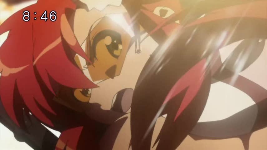 Alors, après visionnage des deux premiers épisodes, on peut se demander si on aura affaire à la série capable de réunir les vieux fans de l'époque Eva/Nadia/Gunbuster et les nouveaux amateurs des séries flashies du studio. Et ce qui saute aux yeux, c'est une animation de folie, un rythme à 200 à l'heure et un fan-service pas énormément lourd, mais indubitablement présent. C'est pas gagné à mon avis, mais perso, ça ne me dérange pas outre mesure, car la Gainax sous acide (FLCL, Gunbuster 2...), j'adore !