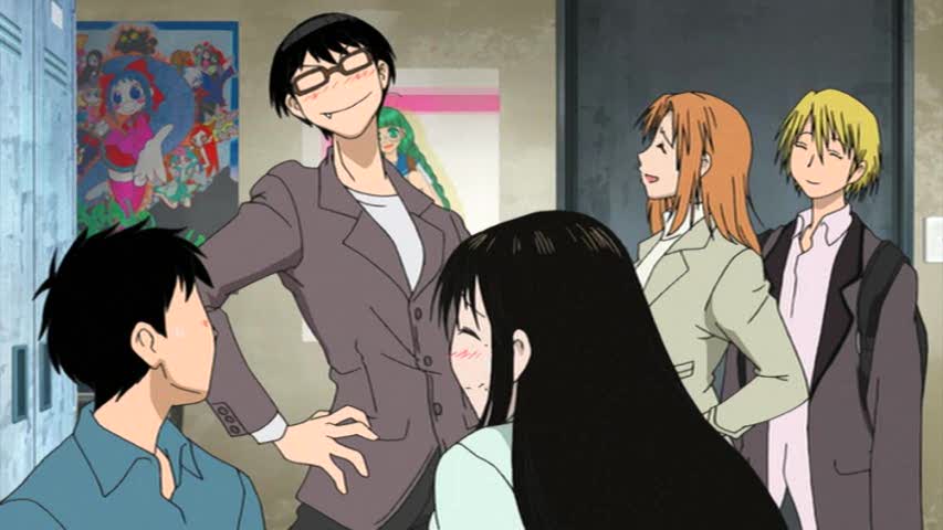 exhibe fiérement au reste du club ses achats de la veille qui sont, sans hésiter, sacrément plus classe que les vieilles fringues d'ado qu'il portait jusque là, ce qui lui vaut même les félicitations de Kasukabe. Finalement arrive Ogiue, comme un cheveux sur la soupe, qui a elle aussi décidé de changer de vêtement... mais a du les acheter à la première boutique du coin et ressemble plus à une