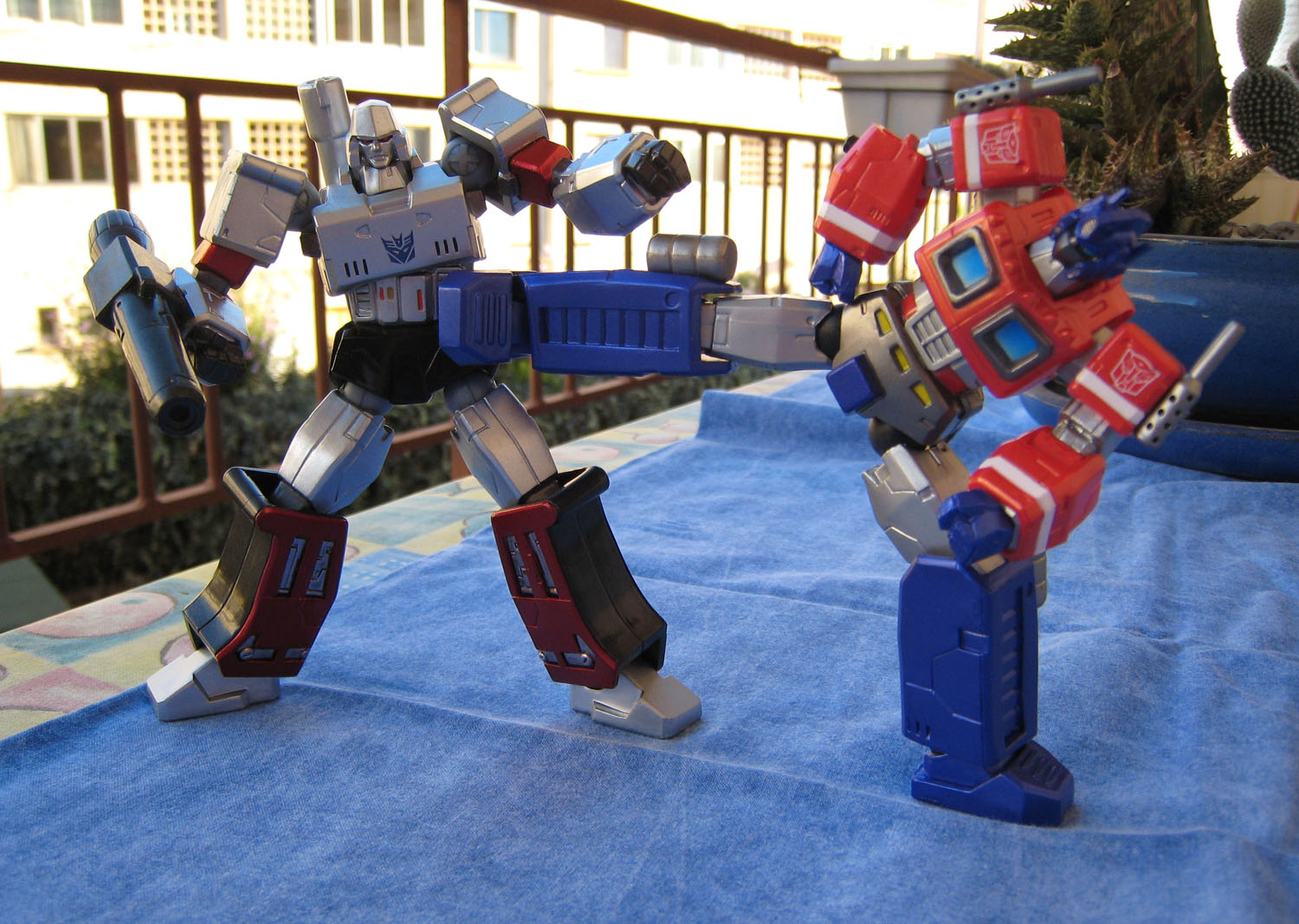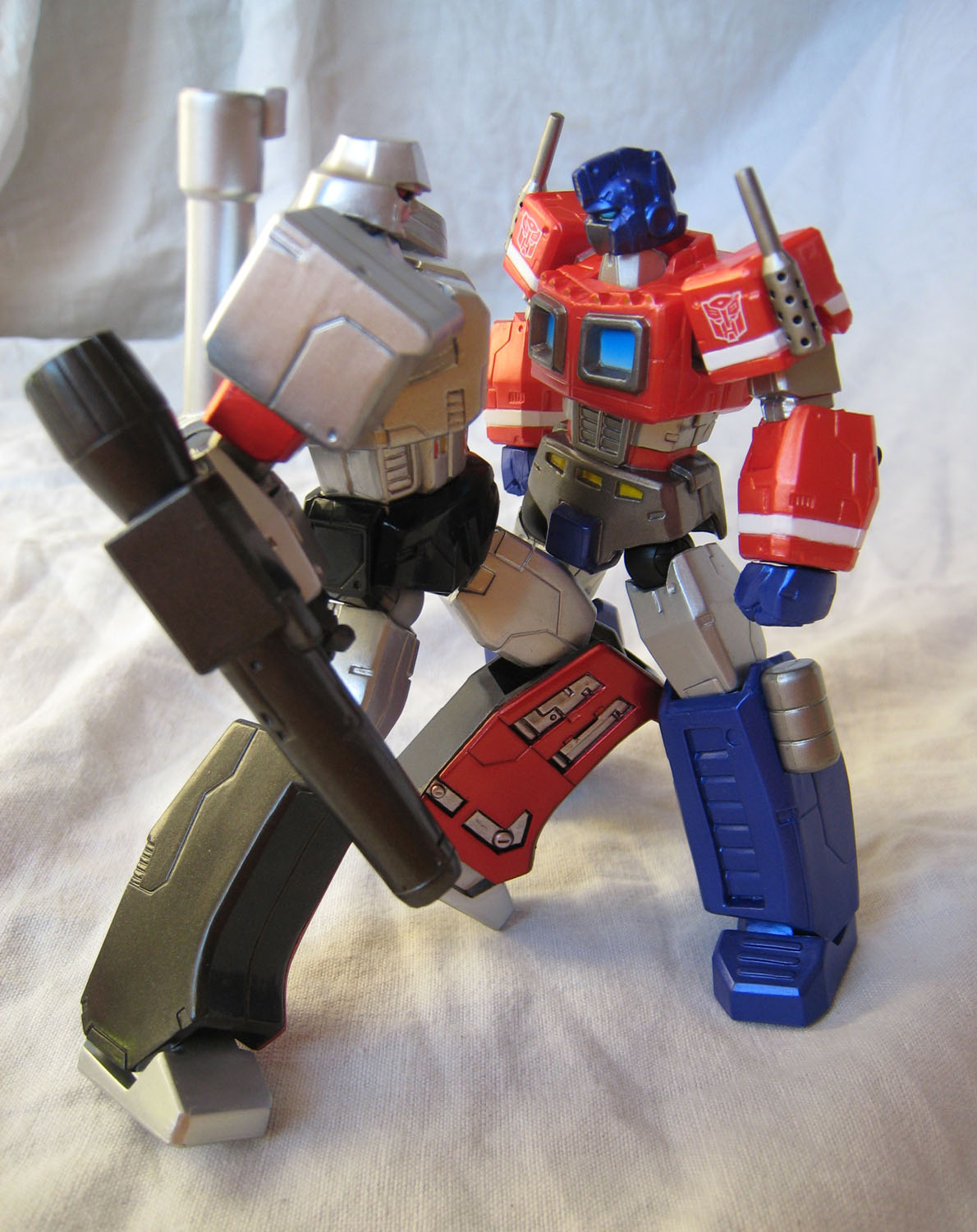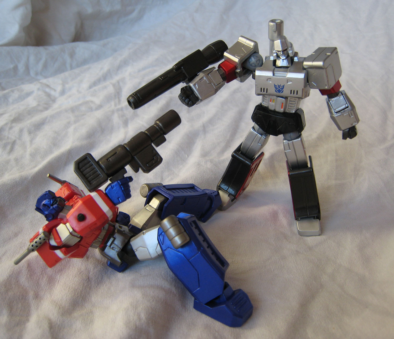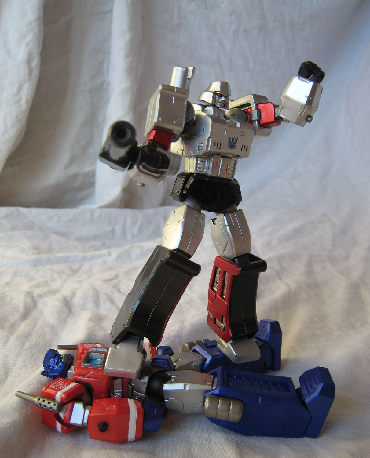 Optimus Prime la dernière fois, il fallait bien le réunir avec son ennemi juré, son nemesis, son plus grand adversaire, et j'en passe et des meilleurs : Megatron, le chef des Decepticons (nommé Destron en version Japonaise, d'où le nom dans le titre de l'article).