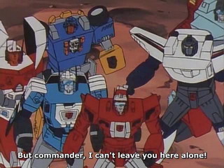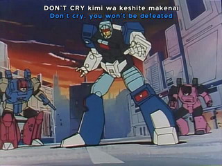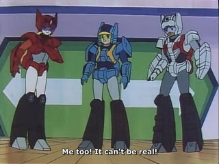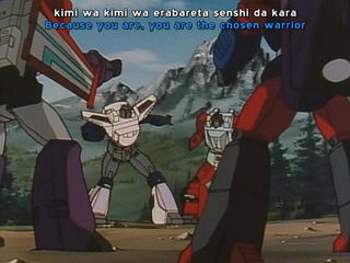 En plus, c'est avec une certaine difficulté que j'ai fini le premier coffret DVD de la première série, et en comparaison, cette séries japonaise lui est bien supérieure. Les robots ne sont peut-être pas aussi beaux, mais les scénarios plus "recherchés", les combats sont plus sympas (ceux de la vieille série US sont très vides, alors qu'ici, l'utilisation des traits de lumière en fond d'écran aide bien à apprécier l'action) et les personnages sont tellement mieux insérer dans le scénario. C'est simple, avec la série américaine, les robots apparaissent du jour au lendemain sans aucun introduction. Ici, chaque nouveau robot a droit à sa petite histoire, afin qu'on puisse un minimum cerner le personnage.
