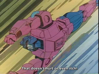 Si les dernières séries sont de nos jours réalisées en 3D (j'attends avec une certaine impatience qu'on se mette avec Dorothée à regarder Galaxy Force qui a l'air de bien promettre), celle-ci, c'est du 100% old-school, avec des designs très années 80, à l'image de ces robots roses, bleus et autres couleurs qui servent à bien repêrer les jouets dans les magasins.
