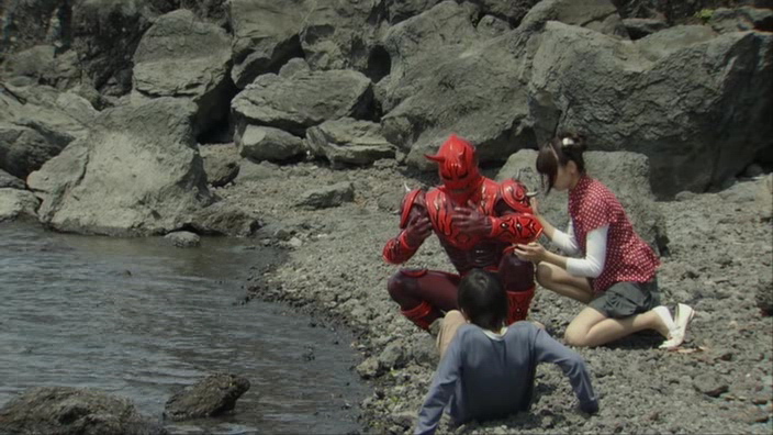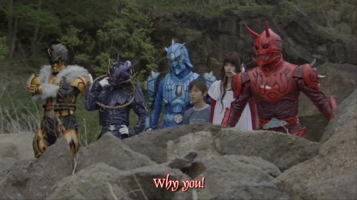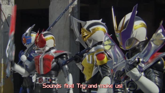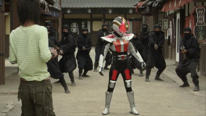 Je vous fais pas le résumé complet, pour le reste, vous rajouter beaucoup de castagne, de l'action, de l'humour, des combats et des henshin, vous mixez et voilà !