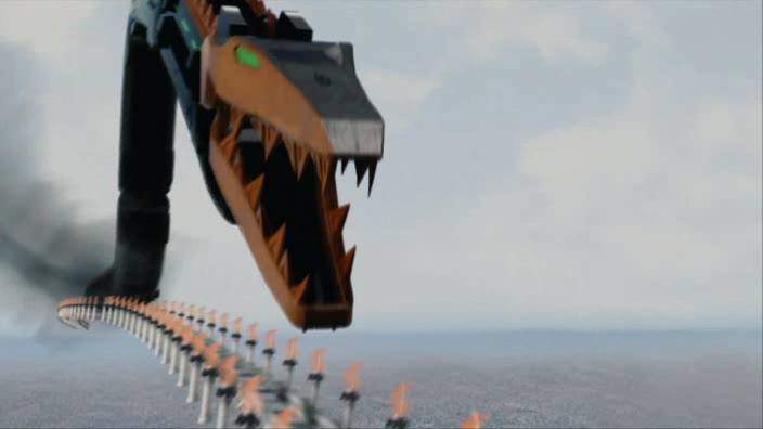 D'un point de vue technique, la série n'avait déjà pas à avoir honte de son utilisation des effets spéciaux, mais il me semble que le film est un chouhia au-dessus, au moins pour les éléments en 3D, comme les trains par exemple. C'est d'ailleurs l'occasion d'avoir quelques scènes d'action entièrement en 3D, l'un où ZeroLiner poursuit DenLiner piloté par Gaou, ça secoue dans tous les sens, et le super combat de fin qui oppose le mega combo ZeroLiner + DenLiner de base + le compartiment d'Urataros + le compartiment de Kintaros + le compartiment de Ryutaros... Nan bah trop long, j'ai pas de capture à vous montrer...