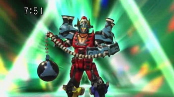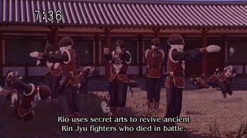 Heureusement, du côté sombre de la Force (décidément, je mélange tout ce soir...), on trouve les RinJyuDen : la sexy Mele et le ténébreux Rio. J'avoue avoir eu un peu peur avec Rio au tout début, avec son design un peu SM, qui rappelle les exubérances stylistiques dont est capable Tetsuya Nomura par exemple. Mais finalement, on s'y fait. Il est un peu limite dans son côté "Moi le plus fort, moi veux me battre et le reste on s'en fout", mais son armure est tellement réussie...