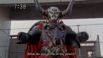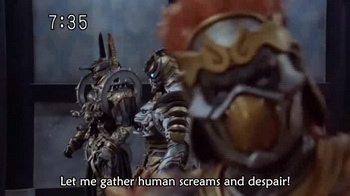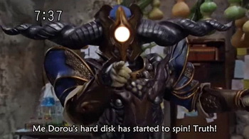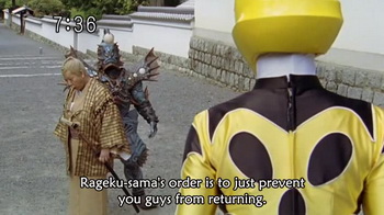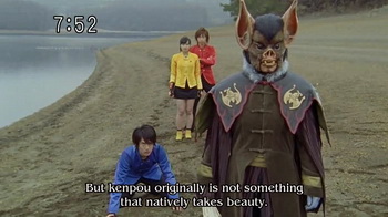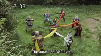 Parce que bon, l'un dans l'autre, ça reste une série pour enfants - je l'avais déjà dit pour Boukenger, et ça n'a pas changé, ce sont des séries faites pour vendre des jouets -, qui tire ses références un peu de tous les côtés, surtout du côté de la mythologie chinoise, mais les costumes, en particulier ceux des méchants, sont généralement un plaisir pour les yeux. On trouve généralement deux types de costumes chez les méchants, ceux de base qui sont détaillés, avec un côté grotesque assez poussé pour bien qu'on comprenne que ce sont des méchants, et puis, il y a les ennemis un rang au-dessus, qui ont un plus grand rôle à jouer et qui possèdent des costumes vraiment magnifiques. Rio, Mele, Maku, Long sont autant d'exemples de personnages très réussis.