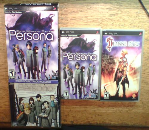 Bref, en faisant un tour sur le site, je me suis aperçu qu'il y avait pas mal de choses intéressantes à pas trop cher, et j'ai jeté mon dévolu sur l'édition limité de Persona 1 ainsi que sur Jeanne d'Arc (après Wild Arms XF puis Tactics Ogre, ça le fera bien). Pour Persona 1, ça me revient, FDP inclus à 30, pour une édition en boîte cartonnée (pas très résistante par contre) et avec l'OST en bonus (que j'ai déjà récupéré sur le net, mais c'est pas grave, ça reste du Meguro, c'est toujours bon à prendre), là où le jeu est disponible en Europe uniquement en téléchargement pour 25. Alors bon, à 5 près, autant avoir une belle boîte et une OST bonus !