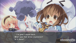 L'histoire tient dans un mouchoir de poche, les trois héroïnes vont voyager de monde en monde pour affronter des monstres pour réunir des objets pour délivrer Histoire, une entité qui que seule Neptune peut entendre, puis trouver quatre armes légendaires afin d'aller botter les fesses du grand méchant. Le jeu est un enchaînement de petites quêtes qui consistent le plus souvent en une scène de dialogue puis un donjon à visiter (boss à tuer, objet à trouver...). Les petites scènes de dialogue se font à la manière d'un visual novel avec des dessins (plutôt jolis) fixes (ou presque, puisqu'on voit les personnages respirer) où l'on voit un ou deux personnages à l'écran, l'un disparaissant quand un troisième vient parler. Il y a pas mal de PNJ qui interviennent (qui ont pour la plupart comme nom des mots Français : Singe, Turquoise, Chevre...) mais ceux-ci sont uniquement représentés sous forme d'ombre. Par contre, ces scènes de dialogues sont ce qui fait l'intérêt du soft puisque les références à l'univers des jeux vidéo y sont légions, et souvent très bien trouvées : à Lowee, on croise une princesse qui en a marre d'attendre dans son château qui le plombier arrive, à Leanbox, on croise un garçon dont la queue est en fait un dragon bleu, à Planeptune, quand les déménageurs font rentrer des cartons dans un camion, dès qu'il y a une ligne de remplie, ils disparaissent... C'est un des rares RPG où on se marre fréquemment, il faut quand même le dire ! Après, niveau mise en scène, ce n'est pas un Final Fantasy, on ne se prend pas de grosses cinématiques dans la face, juste ces scènes de dialogues fixes, et de temps en temps (rarement...) une illustration fixe en plein écran un peu plus détaillée, wouhou !