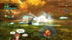 Enfin, les combats pour amateurs de Pokémon, le héros est ses acolytes peuvent combattre eux-mêmes, ou ils peuvent faire appel à leurs familiers (en japonais, des "Imajin", ce qui n'est pas sans rappeler Kamen Rider Den-O pour mon plus grand plaisir !). Chaque ennemi rencontré dans le jeu, une fois tabassé à mort, peut être charmé par Myrta, la fille de l'équipe qui lui chante une petite berceuse. Après ça, chaque personnage peut avoir 3 familiers, chaque personnage ayant des affinités avec certains types de familiers. Et comme les Pokémons, ceux-ci peuvent être entraînés et évoluer. A côté de ça, on peut également les nourrir, ce qui augmentent leur affinité avec leur maître et leur donne des bonus.