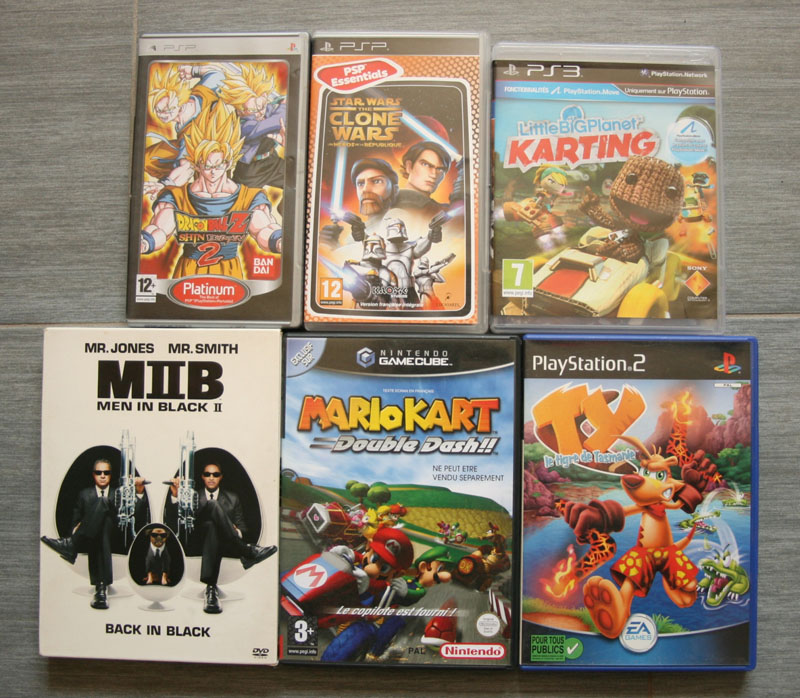 Compte rendu des Cash trucs dans le Nord, avec deux jeux PS2 à 250 et un jeu DS à 3. Nous avons également trouvé quelques DVD, mais je ne les ai pas mis sur la photo.