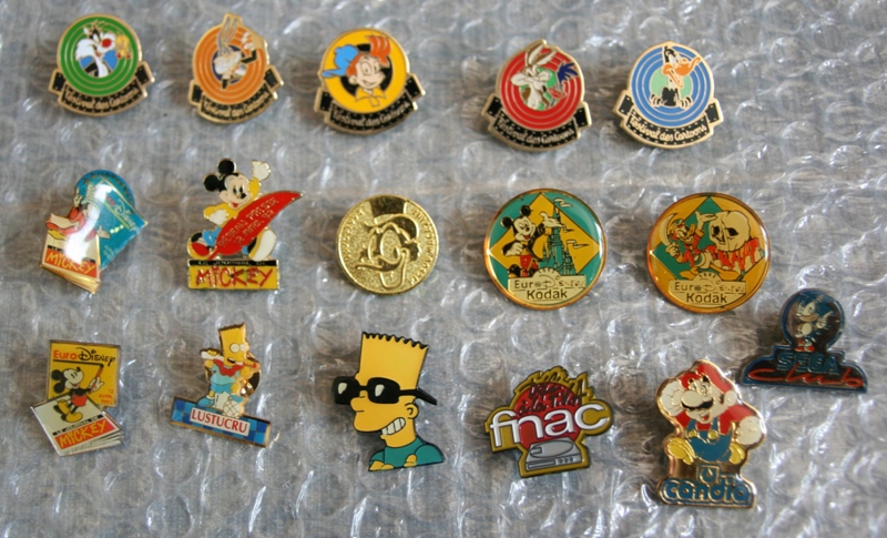 Et pour finir, quelques vieux pin's de Dorothée que l'on a récupérés chez ses parents, on a pris le meilleur, jeux vidéo, Disney,la Warner et les Simpsons !