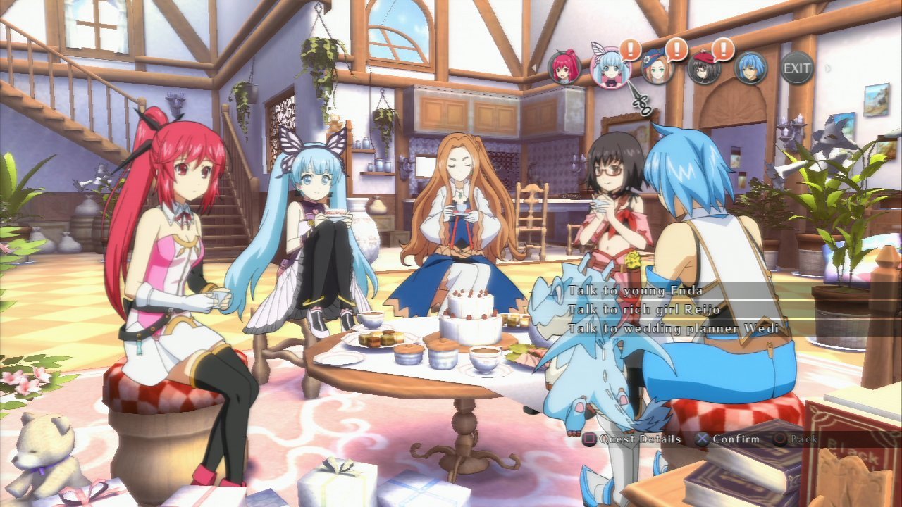 J'enchaîne sur l'histoire, car si encore les dialogues étaient intéressants, ça pourrait passer, mais non, c'est niais, niais, niais... Autant Hyperdimension Neptunia avait un peu ce côté plan-plan, mais les discussions entre personnages étaient plutôt rigolotes, autant ici, rien, c'est juste... niais... Et je ne vous parle pas du scénario général (donc je vous en parle) : Toki est la princesse d'un royaume qui doit se marier avec Zack, mais le jour du mariage, des assassins débarquent et Zack se fait tuer, sauf que Toki a un pouvoir magique qui lui permet de remonter dans le temps et Zack se retrouve dans le corps d'un petit dragon volant qui sert d'animal de compagnie à Toki. Ah oui, et Toki souffre du même syndrome que Lunch/Linch de Dragon Ball puisqu'elle se transforme en Towa à chaque fois qu'elle
