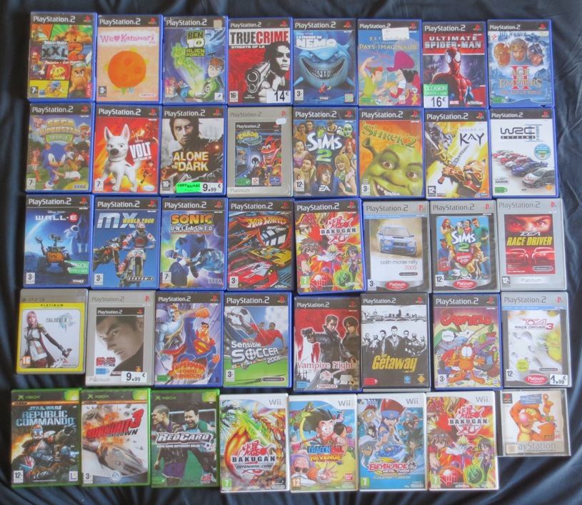 Le dimanche à Fréjus. La majorité des jeux ont été trouvés chez la même personne, qui avait un sac avec 34 jeux dedans. La plupart des jeux n'ont pas de lviret, mais il y en a pas mal que je n'avais pas. En tout, tout ce qu'on voit sur la photo m'a coûté un peu plus de 30.