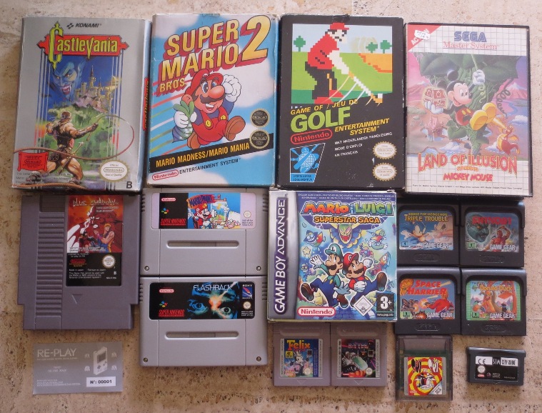 Comme je le disais en haut, samedi, c'était le Re-play Festival. J'en ferai un article plus détaillé à l'occaz. J'aime beaucoup cette convention, très sympa, pas trop de monde (faut dire, c'est tombé la même semaine que la Japan Expo à Marseille...) et pas mal de choix. Forcément, faut pas s'attendre à payer le même prix qu'en vide-grenier, et même si les vendeurs baissent un peu les prix quand on achète en lot, on n'économise jamais plus de 5 même en achetant 4-5 jeux... Ceci étant, le Castlevania est une très belle prise, de même que les Mario que je n'avais pas en boîte.