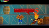 Au niveau des points positifs, l'ambiance du jeu est excellente. A l'exception de la musique (mais j'y reviendrai plus tard), on se croirait vraiment au Mexique (je dis ça comme si j'y étais déjà allé...). Les niveaux sont bien construits, on peut arriver au boss de fin quasiment en évitant les aller-retour inutiles, et même s'il y en a quelques uns à faire, la carte accessible à tout moment montre le lieu où l'on doit se rendre, impossible de se perdre, donc. Le système de combat est sympathique, même si la Vita n'est pas l'idéal pour jouer. Les capacités augmentent au fur et à mesure, le héros peut taper les ennemis puis, une fois qu'ils sont sonnés, tel un bon catcheur, il peut les choper pour les envoyer se cogner aux autres. Le jeu complique la donne avec un pouvoir permettant de passer du monde des vivants au monde des morts, certains ennemis apparaissant dans les deux mondes, d'autres n'apparaissant que dans l'un ou l'autre, il faut parfois jongler dans une même zone de combat entre les deux mondes.