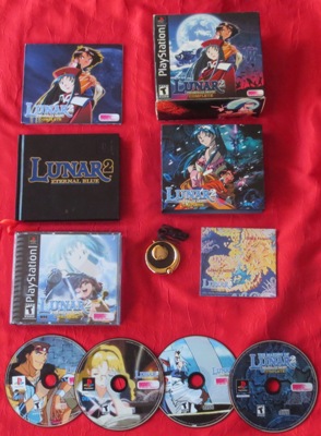 Premier achat, voilà un jeu que je voulais depuis trèèèèèèèèèèèès longtemps. Les arêtes de la boîte sont un peu fatiguées, mais tous les bonus sont présents et le jeu est en excellent état. Je finis le jeu que je fais en ce moment (Shadow Hearts 2) et j'enchaîne sur Lunar Eternal Blue !