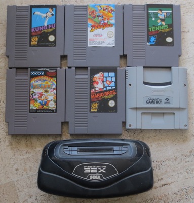 Petit vide-grenier samedi, au centre ville de Puget-sur-Argens avec les gens qui vendaient juste devant leur maison. Comme il y en avait déjà eu un au même endroit il y a quelques mois, les gens n'avaient pas forcément grand chose de neuf (ou de vieux plutôt) à proposer, mais je suis retombé sur un vendeur qui m'avait déjà vendu des jeux GB la dernière fois. Là, il me reconnaît et me dit qu'il y a un 32x et quelques jeux Nes à vendre. 35 le lot, ça reste raisonnable. Bonne nouvelle, le Rainbow Islands qui cote dans les 20, mauvaise nouvelle, la 32x en loose et je n'ai pas les câbles... (ni de jeu de toute façon)