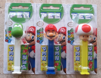 Et maintenant, les petits extra, tout ce qui n'est pas jeux, mais qui restent dans l'univers. On commence par ces 3 Pez Mario. Apparemment, il existe d'autres Pez Mario, plus anciens, mais pour cette nouvelle série, il n'y a que ces trois-là (bizarre qu'il n'y ait pas de Luigi)