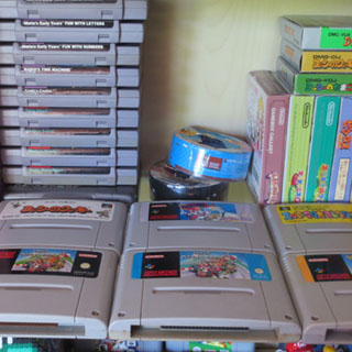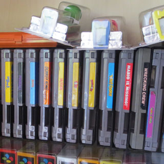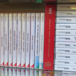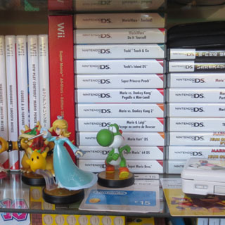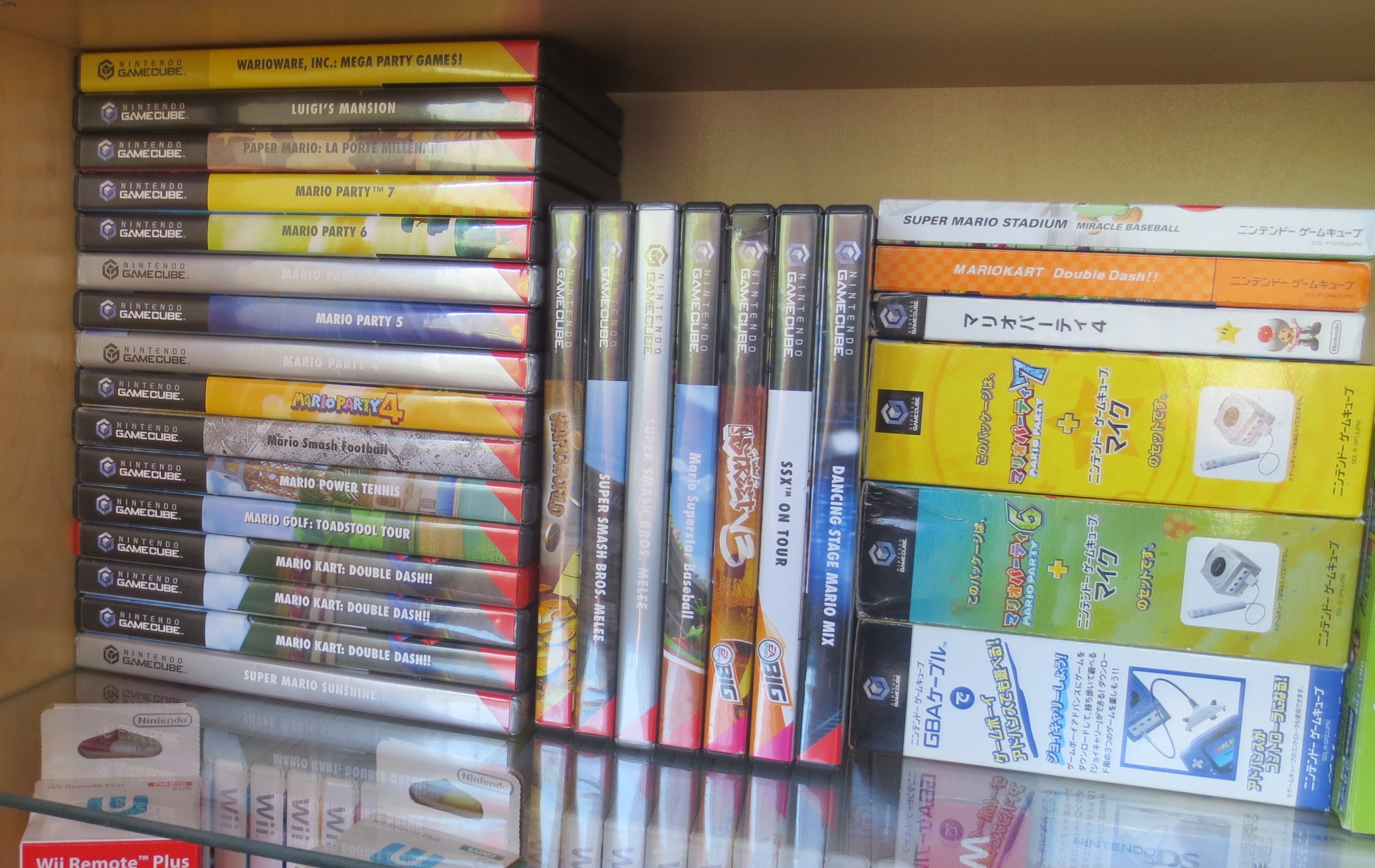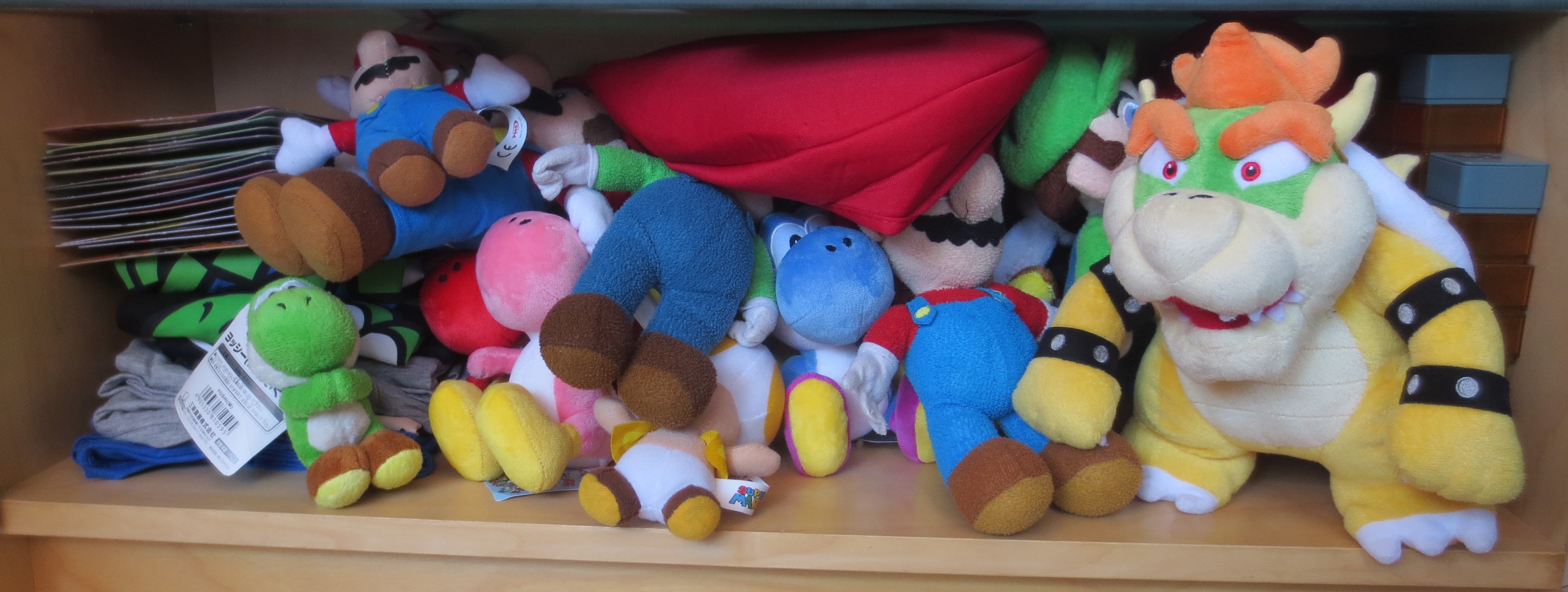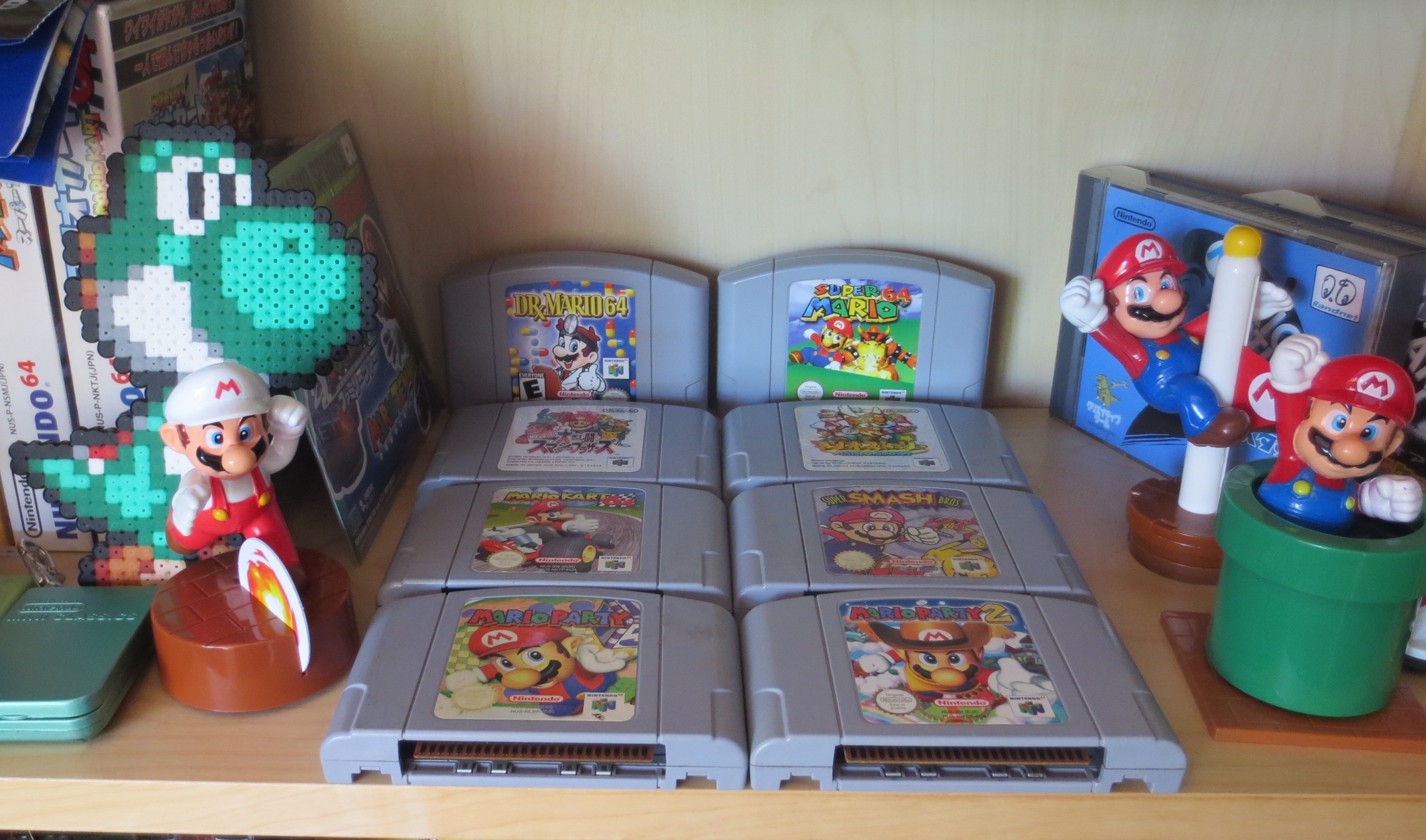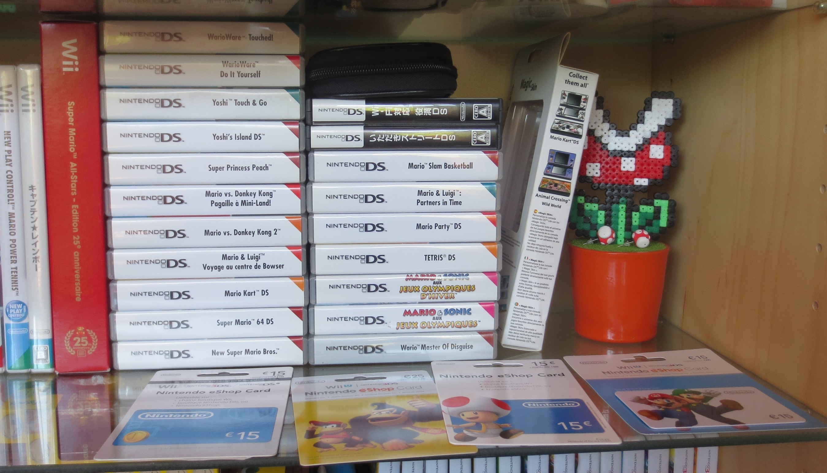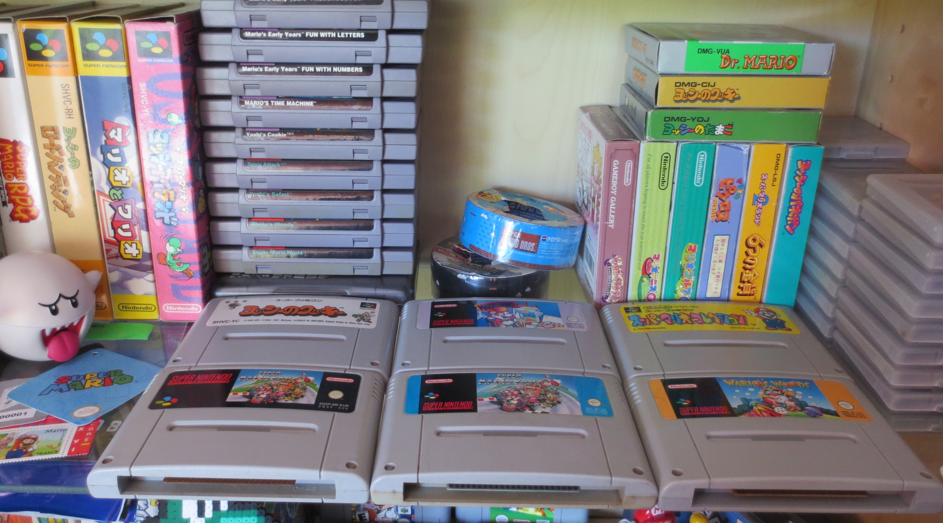 En juin 2014, j'avais fait un article sur ma collection de jeux Mario. Depuis, la collection a bien évolué, et j'ai eu envie de faire une mise à jour. Niveau jeu, j'en ai plus de 200 (240 au dernier décompte) et il m'en manque encore une quarantaine (dont la plupart ne sont jamais sortis du Japon et certains atteignent les 300 voire plus, du coup, je ne suis pas prêt à mettre la main dessus...). La collection peut toujours évoluer en remplaçant les jeux en loose par des jeux en boîte (sur console de salon, why not? sur console de portable, ça me tente moins) et en produits dérivés, il y a de quoi faire (j'ai d'ailleurs l'impression que Nintendo fait exprès de sortir de plus en plus de choses depuis que j'ai commencé à collectionner mais je dois être un peu parano). Bon, je mets les photos en vrac, elles sont rognées, en cliquant dessus, elles s'ouvrent en grand avec un petit commentaire à chaque fois sur le contenu de la photo. |