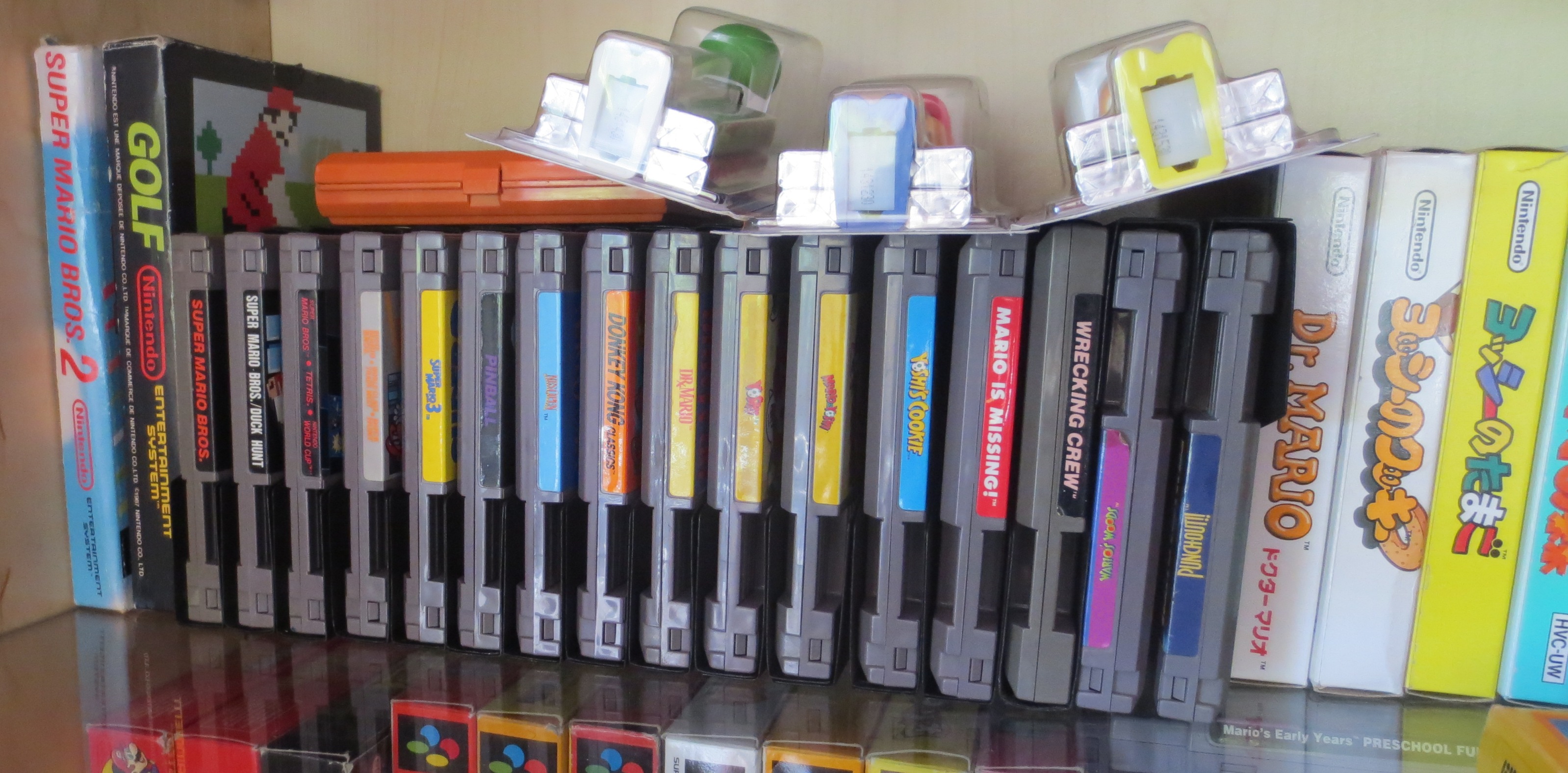Hello. Bravo pour cette collection. C 'est vraiment super de voir tous ces jeux. On peut dire que tu es un vrai fan du plombier moustachu. En tout cas, c 'est génial d 'être passionné à ce point par ce petit personnage. Ciao !