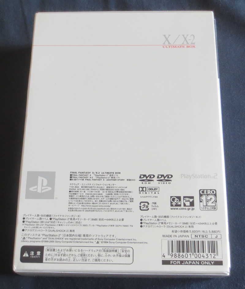 Enfin, un peu de FF, avec FF4 sur GBA (le seul que j'ai en version US sur GBA), Dirge of Cerberus et une Ultimate Box pour FFX/X-2. Plus de photos ci-dessous.