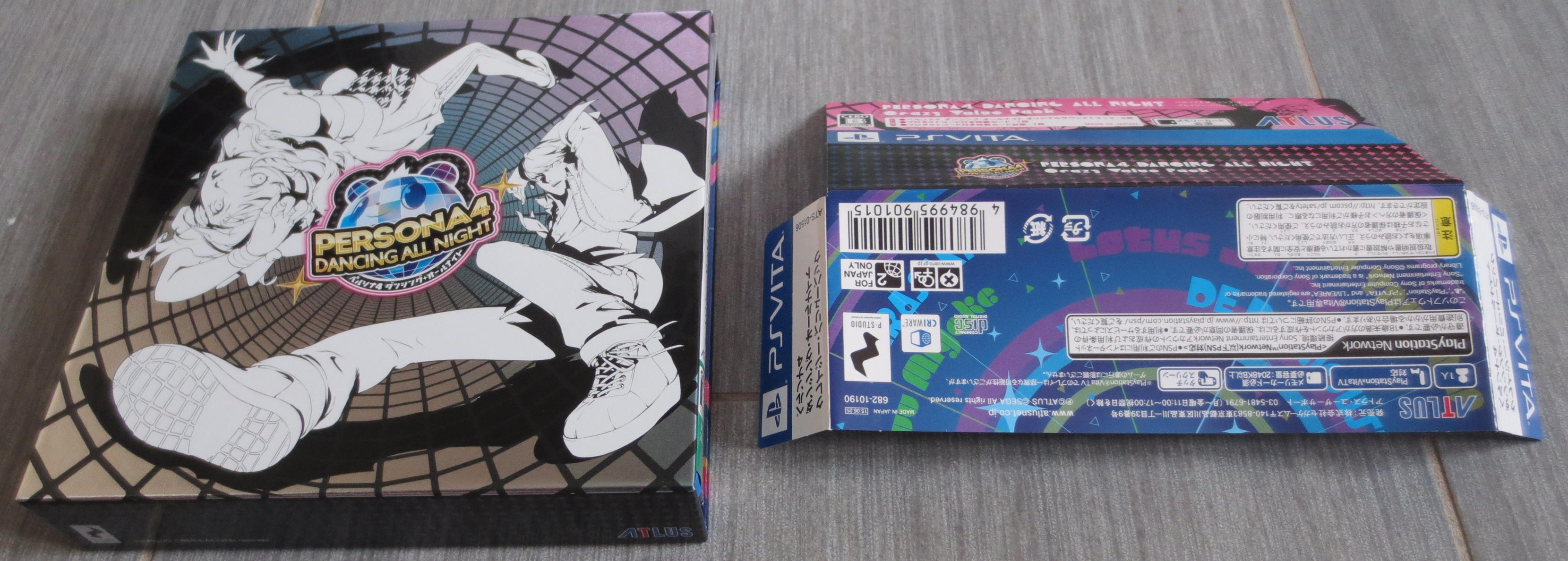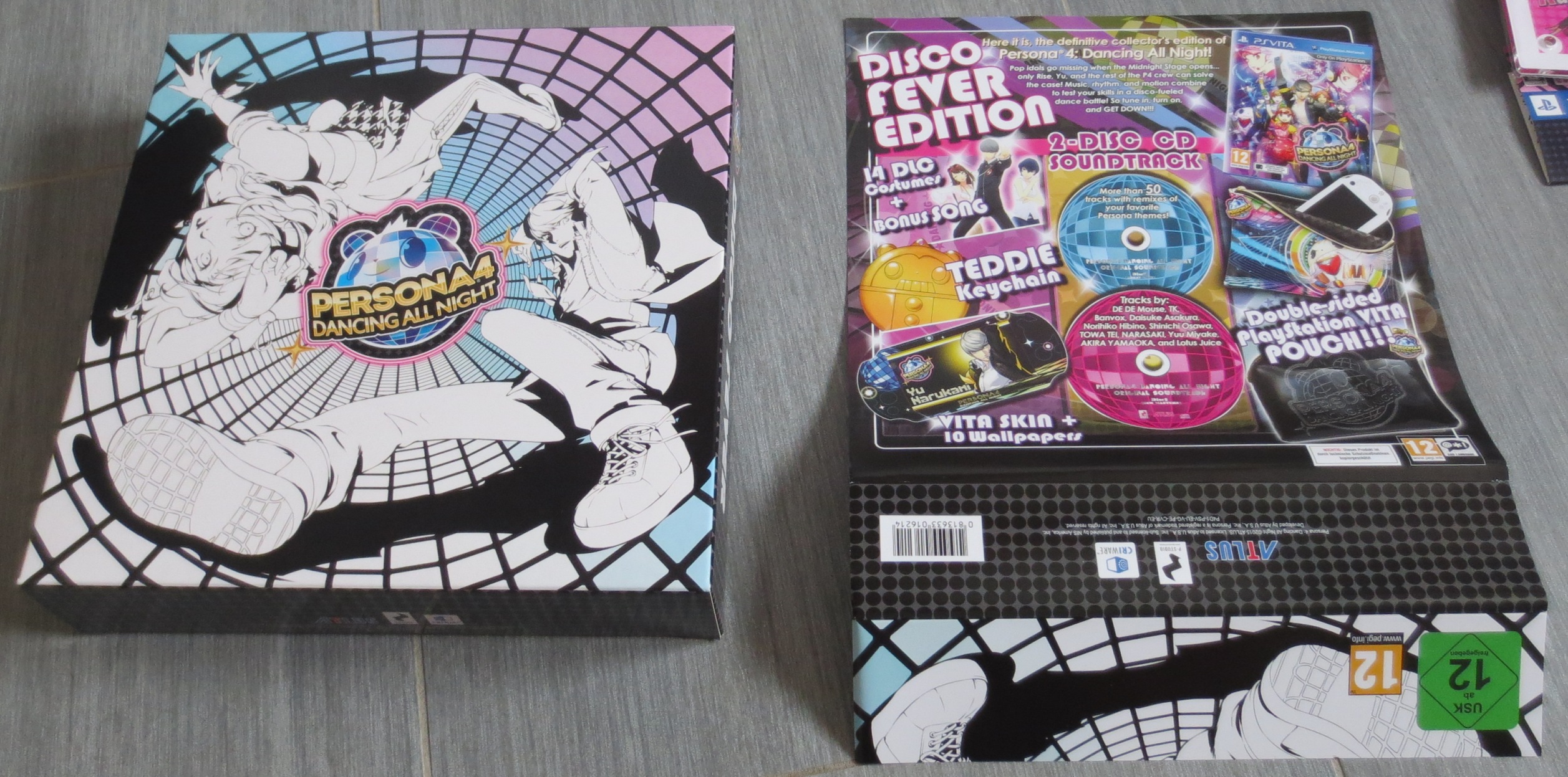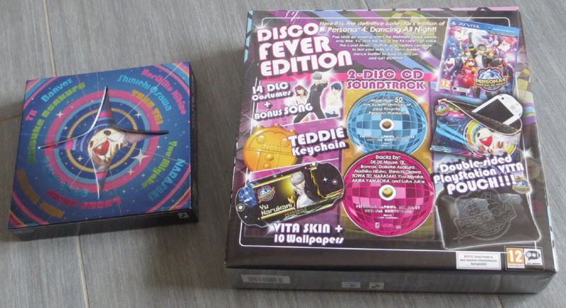 Petit plaisir du jour, je fais un article pour montrer le contenu de Persona 4 Dancing All Night Disco Fever Edition (on dirait un titre de jeu Capcom...). Bon, j'ai mis unboxing en titre, mais ce sont juste des photos du contenu. Pour ceux que ça tente, la version européenne est disponible sur Amazon, et la version japonaise, la Crazy Value Pack, est disponible chez Play-Asia. Allons-y pour les photos (clic dessus pour les voir en plus gros) :