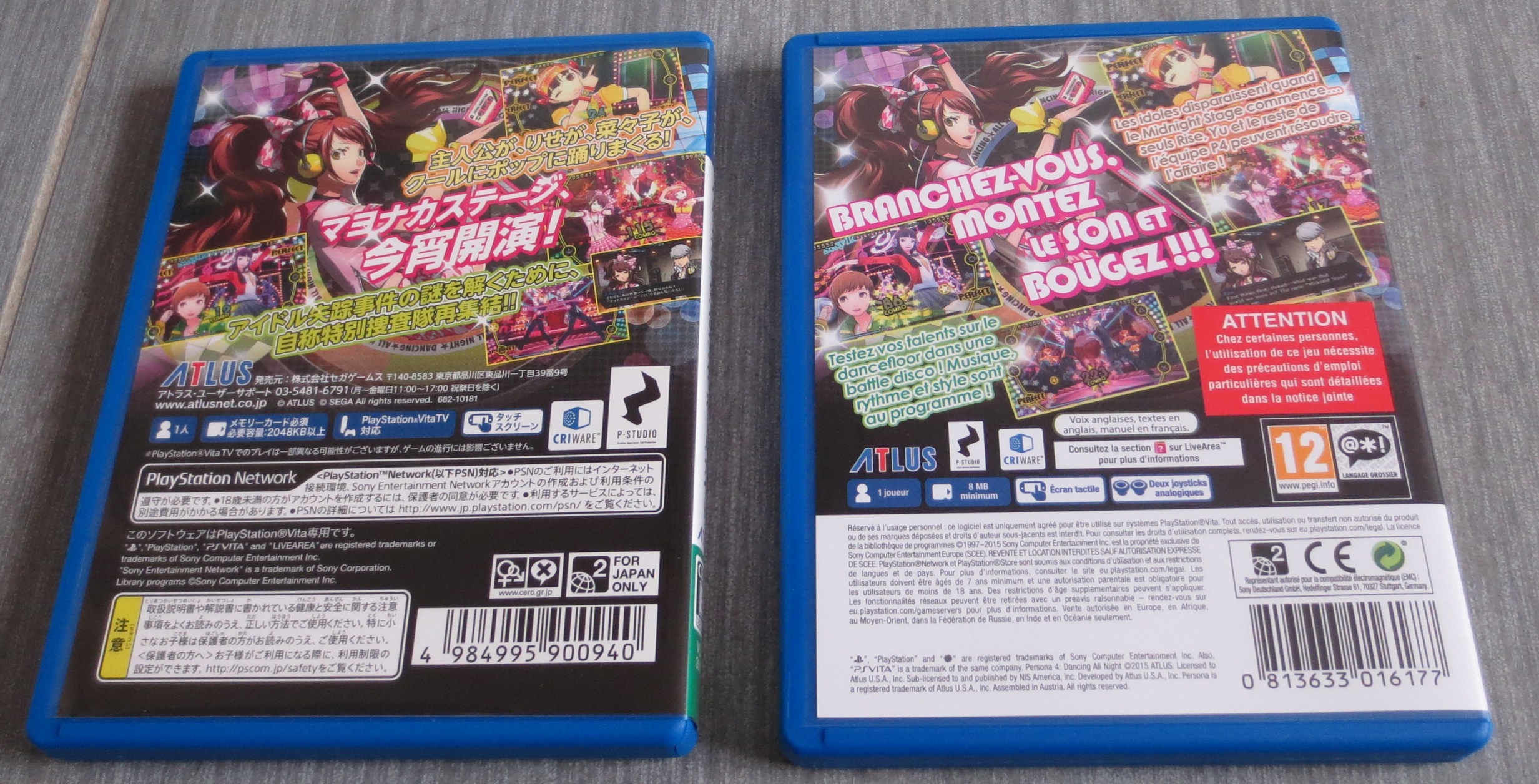 Les jeux : très peu de différences aux niveau des boîtes à part les textes situés à des endroits différents. Par contre, s'il y a un pseudo livret dans la version japonaise, la version euro est toute nue.